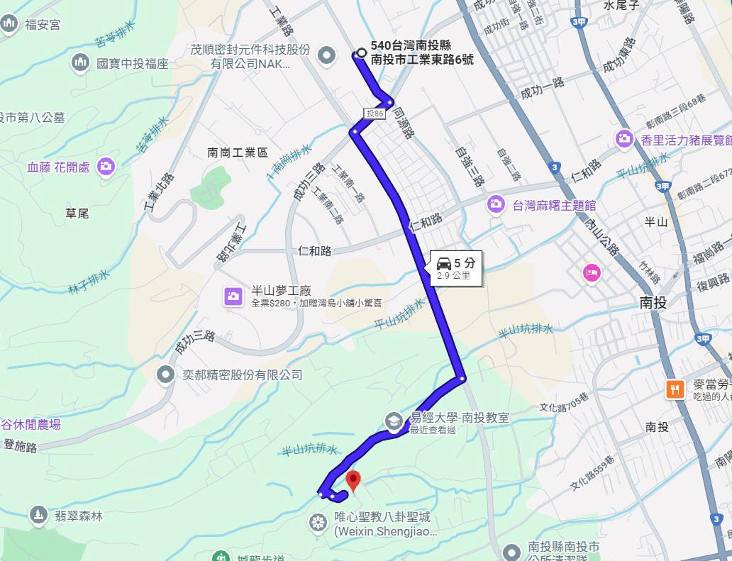成功三路右轉 – 工業路左轉 –